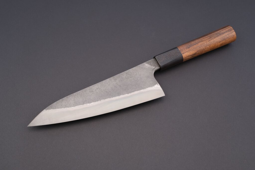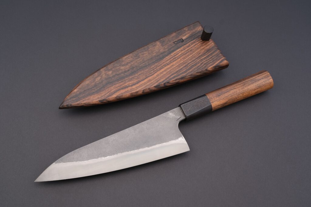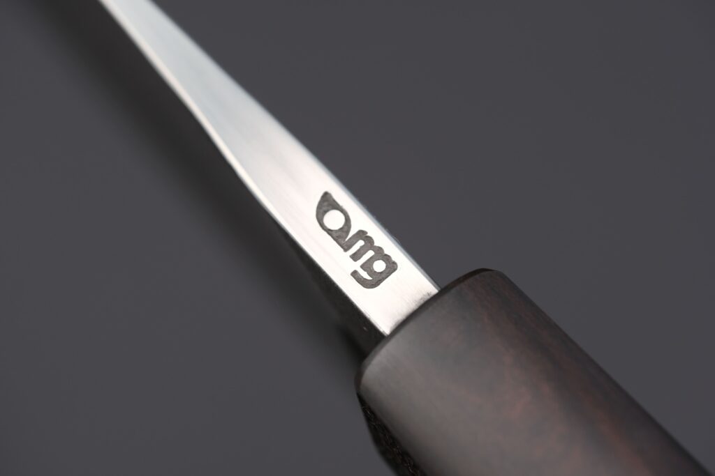 Die extreme Schärfe wurde mit der präzisen Schleifvorrichtung NOWI PRO von Katocut erreicht. Dabei kamen sowohl synthetische als auch japanische Natur-Wasserschleifsteine zum Einsatz. Der Schärfwinkel wurde auf 16.5 Grad pro Seite festgelegt, um optimale Schneideigenschaften zu gewährleisten.