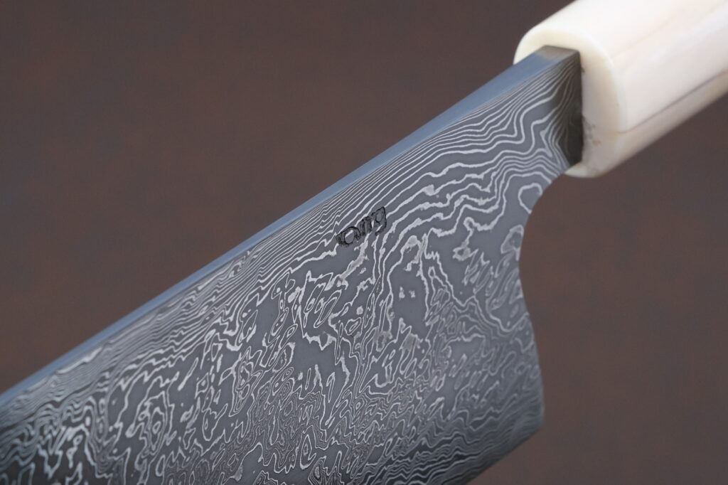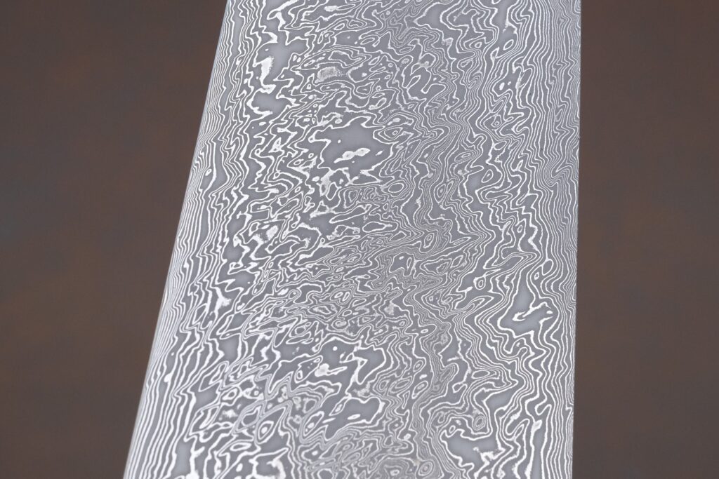 Die Klinge besteht aus einem Hochleistungsdamast mit ca. 195 Lagen.