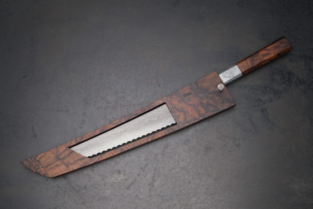 Dieses Brotmesser ist mehr als ein Werkzeug – es ist eine Hommage an einen besonderen Menschen und seinen Lebensweg. Gemeinsam mit seiner Frau und seinen Kindern hat mein Kunde über viele Jahre hinweg ein prächtiges deutsches Familienhotel nahe der Schweizer Grenze geführt.